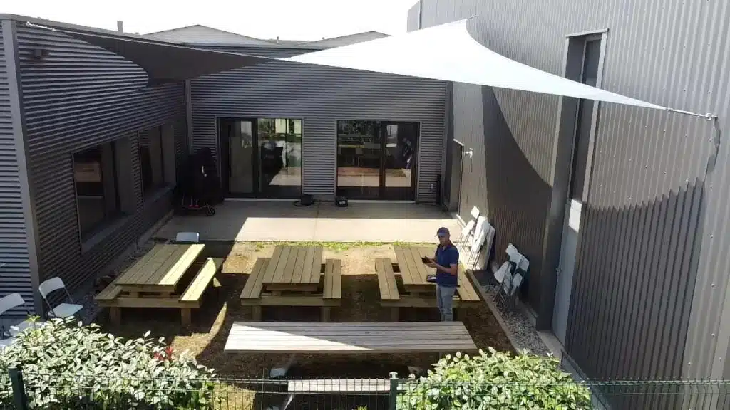 Offrez à vos employés et visiteurs un espace extérieur agréable et accueillant, propice à la détente et à la convivialité. Nos voiles d’ombrage s’adaptent parfaitement aux différentes configurations de votre entreprise, que ce soit pour ombrager des espaces de pause, des cafétérias ou des zones d’accueil.